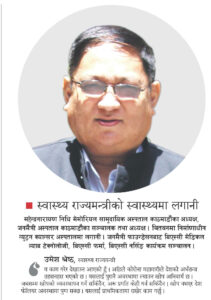 झन्डै ५० करोड लगानी गरेर यही वर्षदेखि ‘हस्पिटल चेन’ बनाउने अभियानमा लागेका व्यवसायी उमेश श्रेष्ठलाई प्रधानमन्त्री शेरबहादुर देउवाले स्वास्थ्य राज्यमन्त्रीको जिम्मा दिएका छन् । कांग्रेसका समानुपातिक सांसद श्रेष्ठ प्रधानमन्त्रीपत्नी आरजु देउवाका व्यवसायिक साझेदार पनि हुन् ।