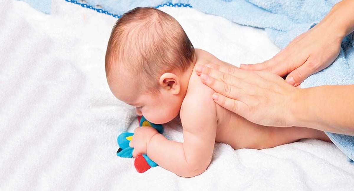 -बच्चाको नितम्बमा मसाज गर्ने।